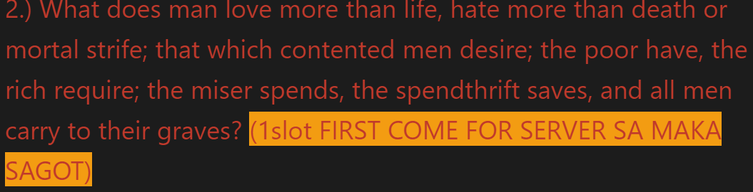 February 23, 20215 yr Thanks for sharing, 16 po tsaka sa riddle nothing ang sagot hehehee Edited February 23, 20215 yr by ichaaan