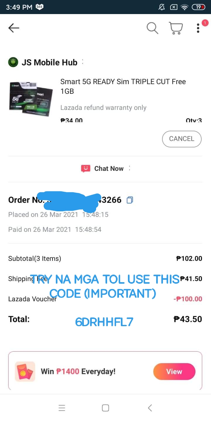 March 26, 20215 yr Lazada Tricks to mga tol since. Marami kase sa mga napapansin ko ay hindi alam kung paano gamitin ang tricks na to - now naisipan ko na gumawa kaya ako ng step by step tutorial para magets naman ng marami. Now kung may lazada app kana please uninstall the app pwede mo rin na ireboot ang device mo if kaya para di mahalata ni lazada na existing user kana, applicable kase to sa New Users palang so okay na nagawa mo na ngayon punta ka sa link na to [hide] Step 1: https://play.google.com/store/apps/details?id=com.lazada.android Install at iopen mo ang lazada Step 2 Gawa kana ng NEW ACCOUNT! (Dapat bago kase mag iinvalid sayo ang trick kapag yung existing na di gagana sayo yun) Kung may ganito kayong nakita click philippines lang Click login now or kahit anong method nyo para gumawa ng new account Pili lang kayo ng way of registering nyo (Uulitin ko Dapat Bago ang account) Sagutan lang ang mga naka bilog and click confirm Step 3: Apply code Click mo lang ang account sa baba tol Swipe Up mo lang Pag nakita mo na yung my service swipe mo lang sa kaliwa Click mo lang yung redeem code Use this code para sa Free ₱200 ni lazada " 6DRHHFL7 " or (alternative) " 6DRI3M02 " tas click redeem now Step 4: How to use this voucher Back mo lang gamit ang arrow sa taas and then pag nandito kana dapat tatlo ang makikita mong voucher, madalas nadedelay yung pagdating ng isa pang voucher so antay antay kalang di naman sobrang tagal yon. Para macheck click mo yung view tas tignan mo kung nandito lahat What if walang lumabas kahit isang voucher? gawin mo ulet pero this time bagong device/phone naman~ minsan kase malas nadedetect parin ni lazada kahit nag reinstall kana pero testing mo sa ibang device/phone worth it naman tong tutorial promise So next na! Bibili na ko, ang napili ko ay smart sim kase mabagal yung globe dito (Note: Dapat 100+ ang bibilhin mo or else lugi ka promise, dahil kahit naka libre ka sa price ng item di ka makakalibre sa shipping) tinatlo ko kase ayokong malugi HAHAHA Mag add ka muna ng address yung nandun sa taas di ko na pinakita kase personal info ko yun hehehe Laki ng discount ko diba HAHAHA pero if ever di nag apply agad ang voucher(automatic kase saken eh) click mo lang ang lazada voucher tas hanapin mo yung 100 pesos then place order mo na Grab nyo na po ang psgkakataon na to kase malapit na ang birthday sale ni lazada ? paclick po neto if ever tapos na kayo sa steps ? https://s.lazada.com.ph/s.cnCyy UPDATE: May nag sasabi saken na di daw nila nakukuha yung 100 pesos na voucher. Follow nyo step ko Yan dalawa lang ang voucher ko click mo lang yung home sa baba click mo lang to, or minsan mag ppop up yun automatic(pag automatic na nag pop up click mo lang ang open) pero if hindi pag naclick mo na ang home click mo ang gift na yan. Yun lang may 100 voucher kana- use mo na yan kase may expiration ang voucher na yan sayang naman pag di nagamit ? Pwede nyo din akong imessage kung may problems paden kayo dito sa tutorial, I'm willing to help ? NOTE: Guys, pag umorder kayo siguraduhin nyo na po kase once na nag cancelled order ka di mo na makukuha ulet ang ginamit mong voucher ? UPDATE: Sa mga nag tatanong kung working pa to. May proof po ako na working pa, dalawang beses na order ko na po sa device na to. XiaoYing_Video_1616924984102.mp4 Thank You and Good luck ? [/hide] Edited March 29, 20215 yr by Copyright update