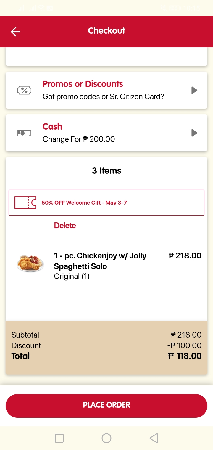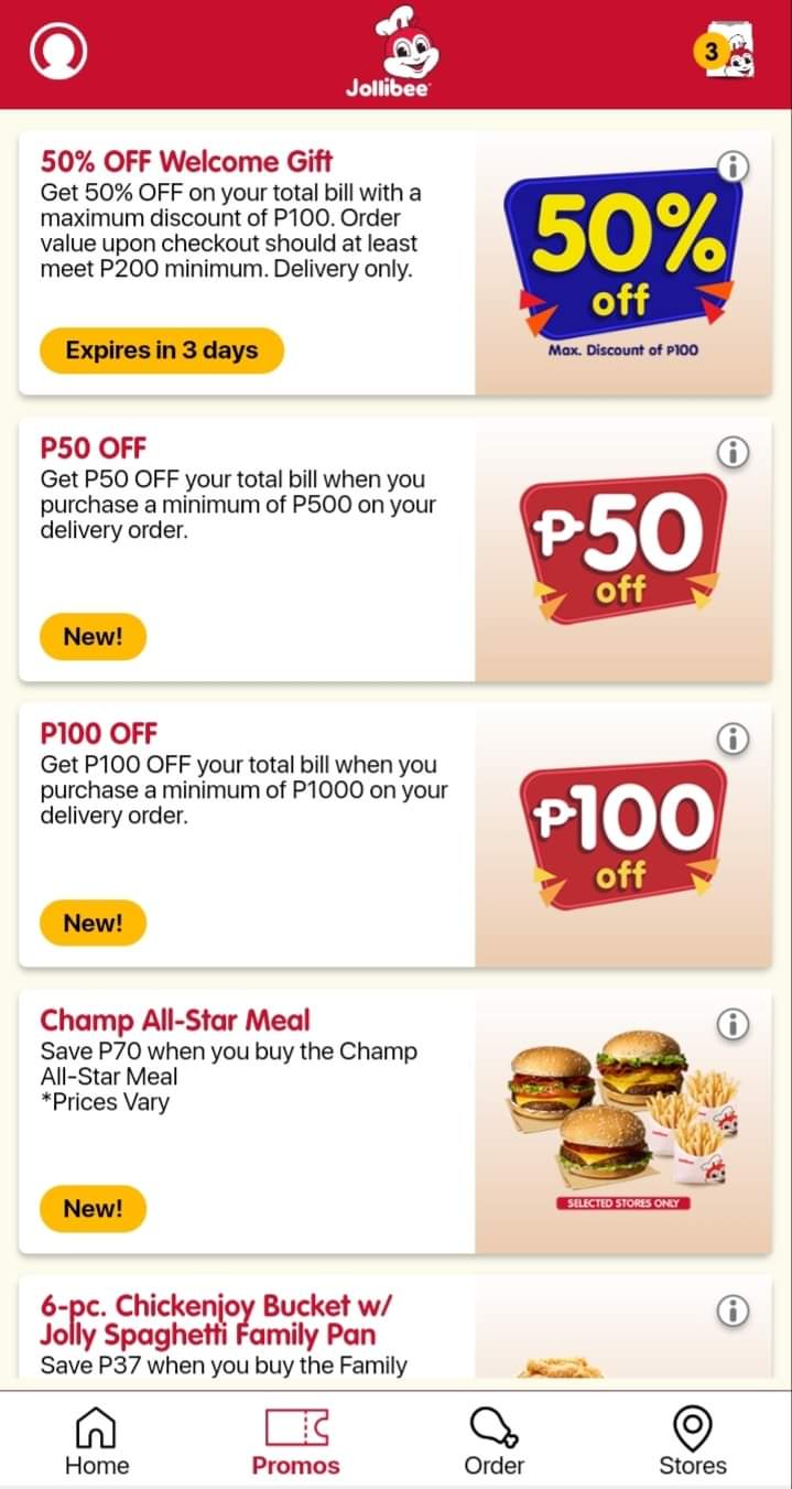 May 6, 20214 yr [hide] Download jolibee app sa google playstore2 order yan ng spagetti with chicken joy. 118pesos lang. Sulit diba?New user lang.Free delivery ata kasi binayaran ko lang 118pesos e.Nag deliveryJolibee rider or foodpandagoKaya dapat exact address lagay nyo. Hindi tumatawag rider ng jolibee. Note: Dapat lumabas yung voucher na 50% Off confirm mo email address mo bago mo icheckout. [/hide] Edited May 6, 20214 yr by Mandalorian